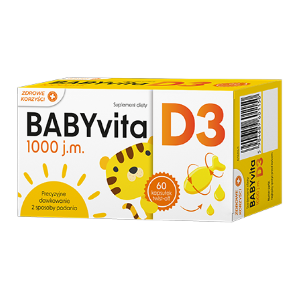 Babyvita D3 j.m. Zdrowe Korzyści jest suplementem diety, który jest przeznaczony dla dzieci od 12 miesiąca życia, młodzieży i dorosłych.